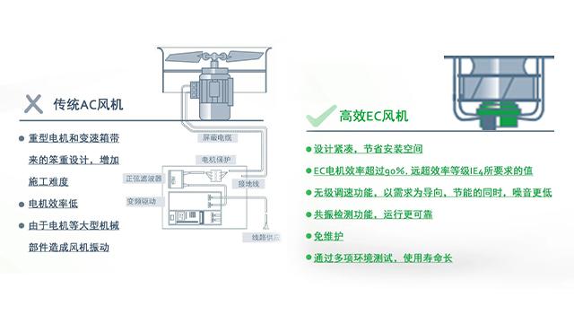 傳統(tǒng)AC風(fēng)機(jī)都具有重型的電機(jī)和變速箱,這樣的設(shè)計(jì)顯得很笨重,增加了施工的難度,電機(jī)的效率也很低,并且大型的電機(jī)等機(jī)械組件還會(huì)造成風(fēng)機(jī)的振動(dòng),很影響冷卻塔的工作效率。而空調(diào)冷卻塔風(fēng)機(jī)采用的是綠色科技EC電機(jī),這種設(shè)計(jì)更加緊湊,并且節(jié)省安裝的空間。EC電機(jī)效率遠(yuǎn)超普通大型電機(jī)90%,并且還具備無級(jí)調(diào)速功能,在節(jié)能的同時(shí),工作噪音更低,安裝維護(hù)更便捷,使用壽命更長。